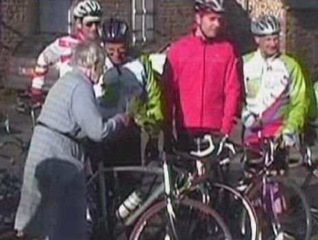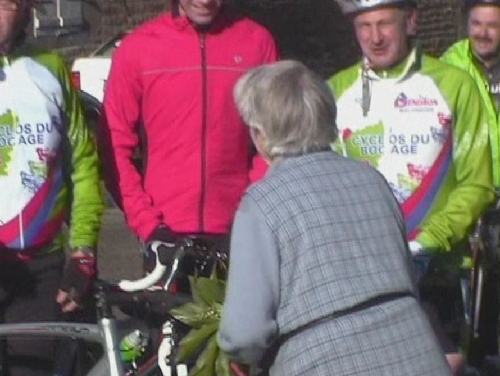 Mme Deniau, pour l'occasion a ceuilli du muguet pour les cyclos.